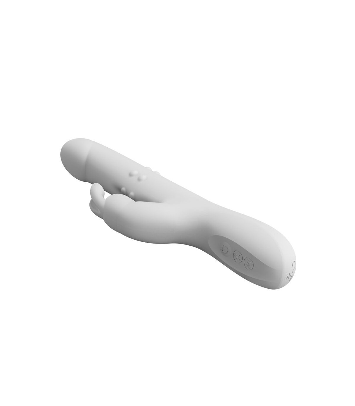 Vibrador de conejo con vibración de varias velocidades, empuje y amp; ¡la rotación estimula la vagina y el clítoris al mismo tiempo! El vibrador de conejo de Pretty Love tiene una textura agradable y gira y gira profundamente dentro de la vagina mientras masajea el punto G. El clítoris es estimulado al mismo tiempo por el estimulador flexible con vibraciones. Este programa de placer completo con vibración, empuje y rotación de múltiples velocidades se puede controlar fácilmente con el botón de control. El vibrador se ajusta perfectamente a la anatomía femenina y está completamente hecho de un material de silicona suave y aterciopelado que se siente muy bien contra la piel durante el juego. Además, el vibrador se puede recargar con el cable USB incluido.